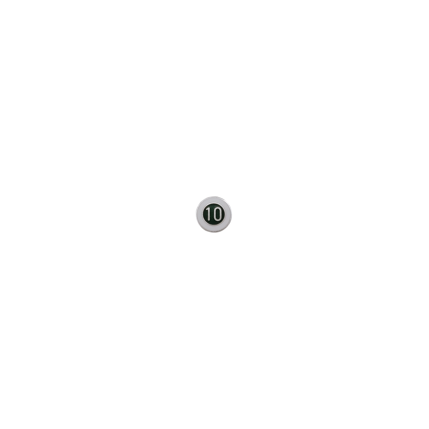 Auflage mit Zahl 10, Grün-Weiß, ca. 16 x 16 mm, Messing, massiv geprägt, versilbert, ohne Befestigung